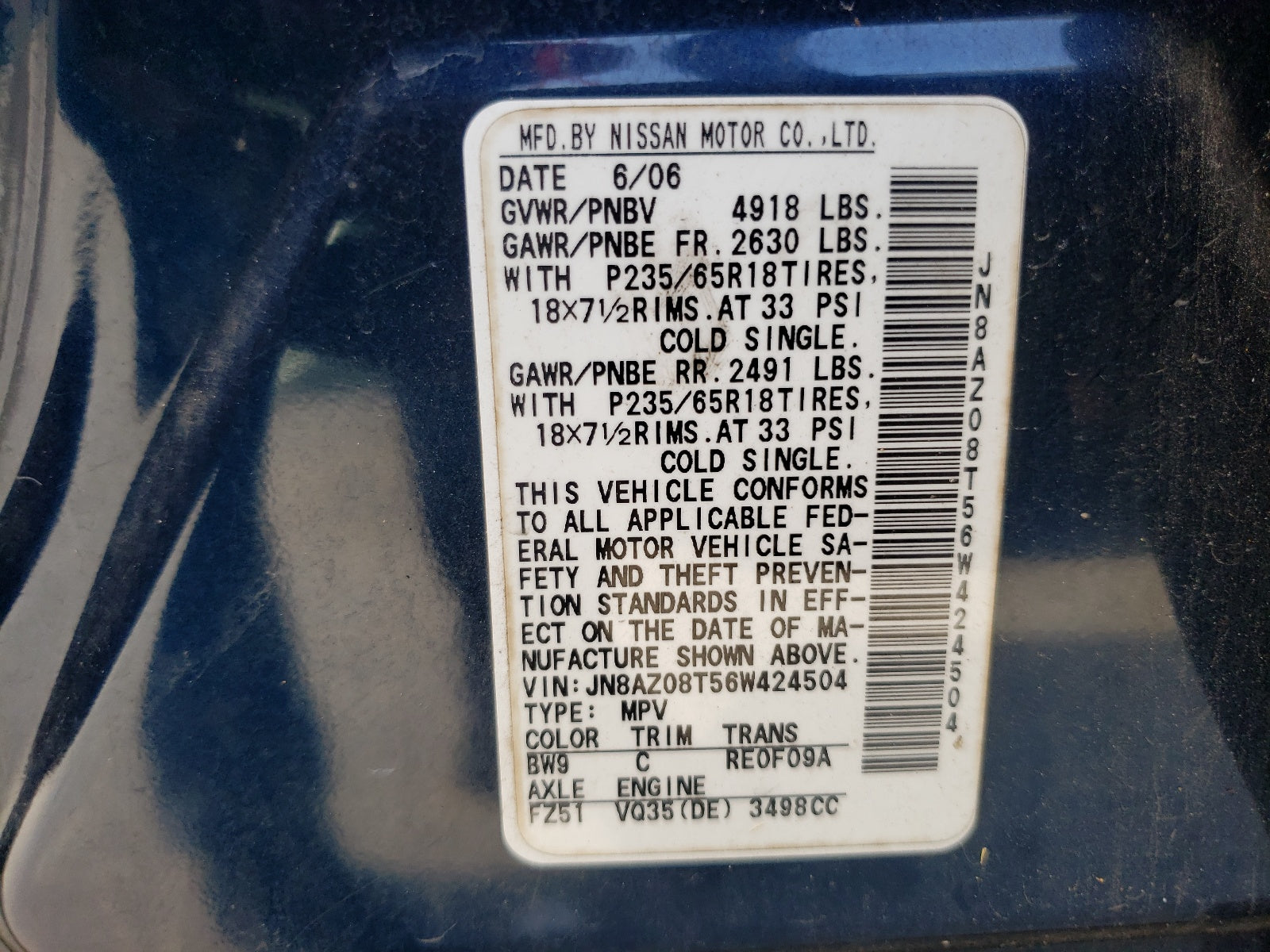 - VIN: JN8AZ08T56W424504