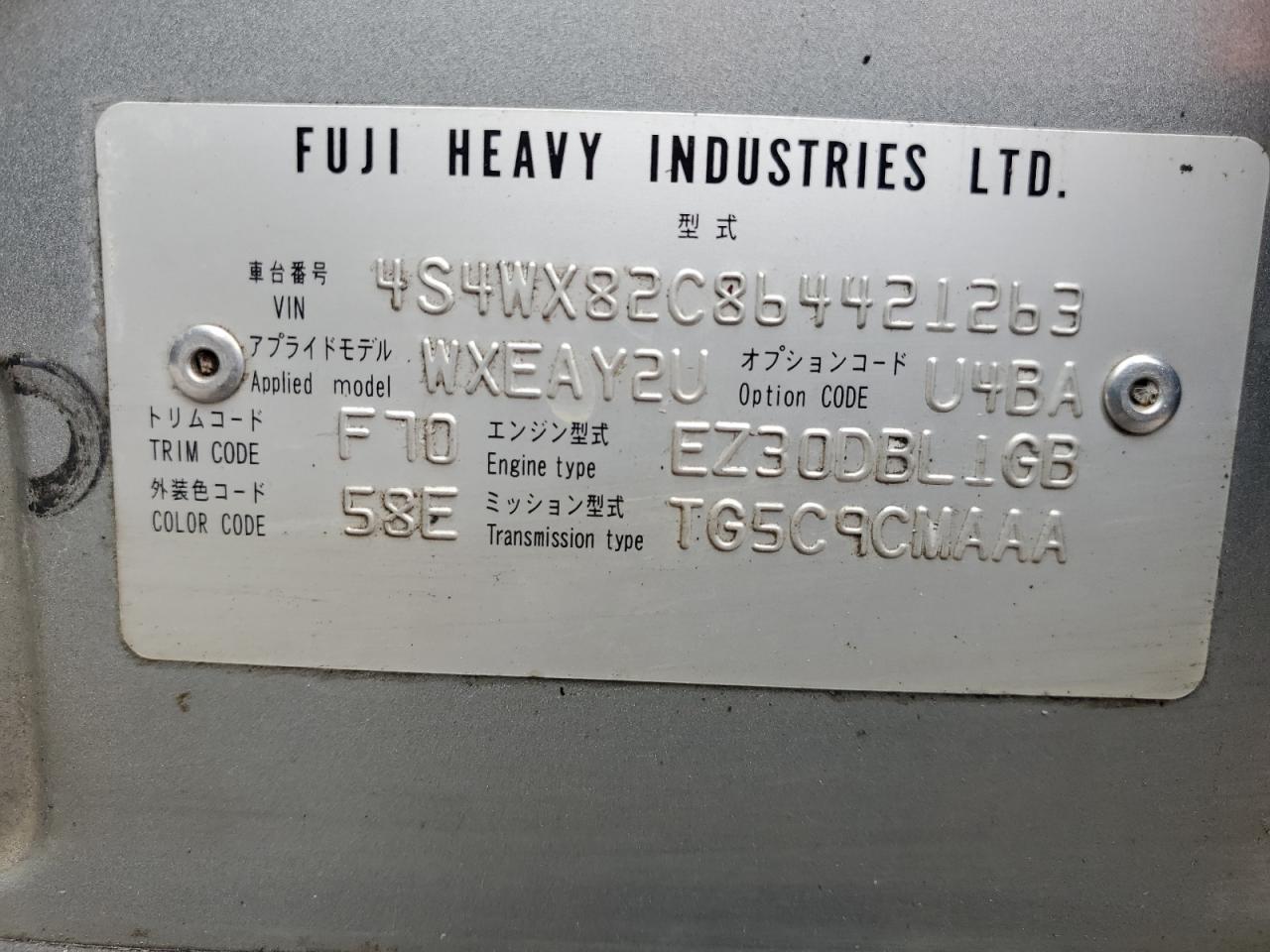 - VIN: 4S4WX82C864421263