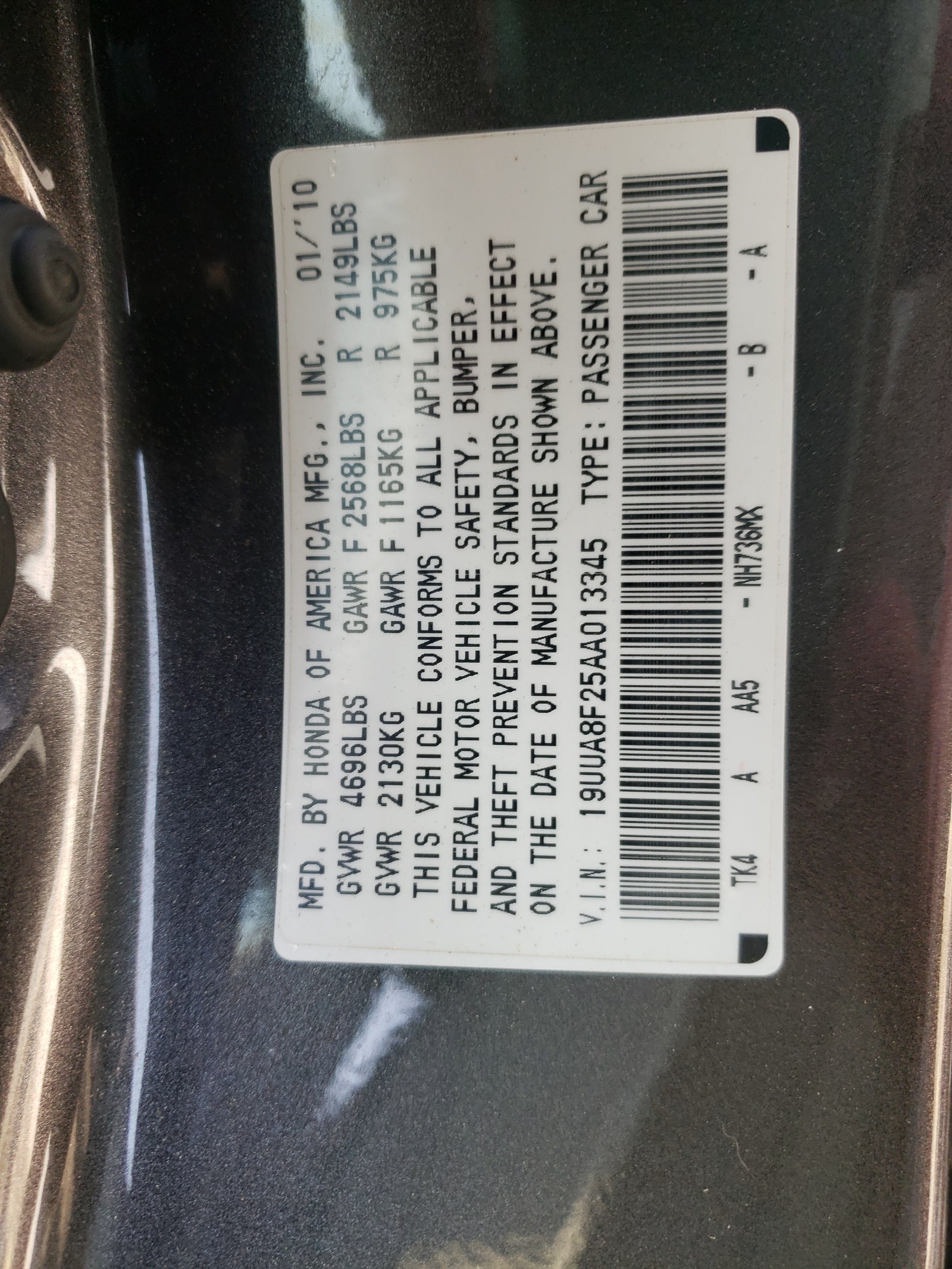 - VIN: 19UUA8F25AA013345