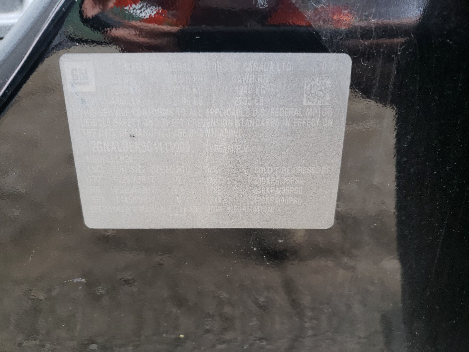 - VIN: 2GNALDEK8C1111909