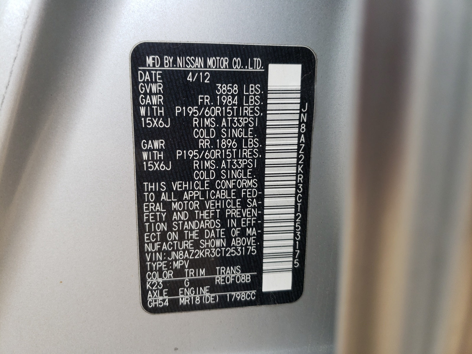 - VIN: JN8AZ2KR3CT253175