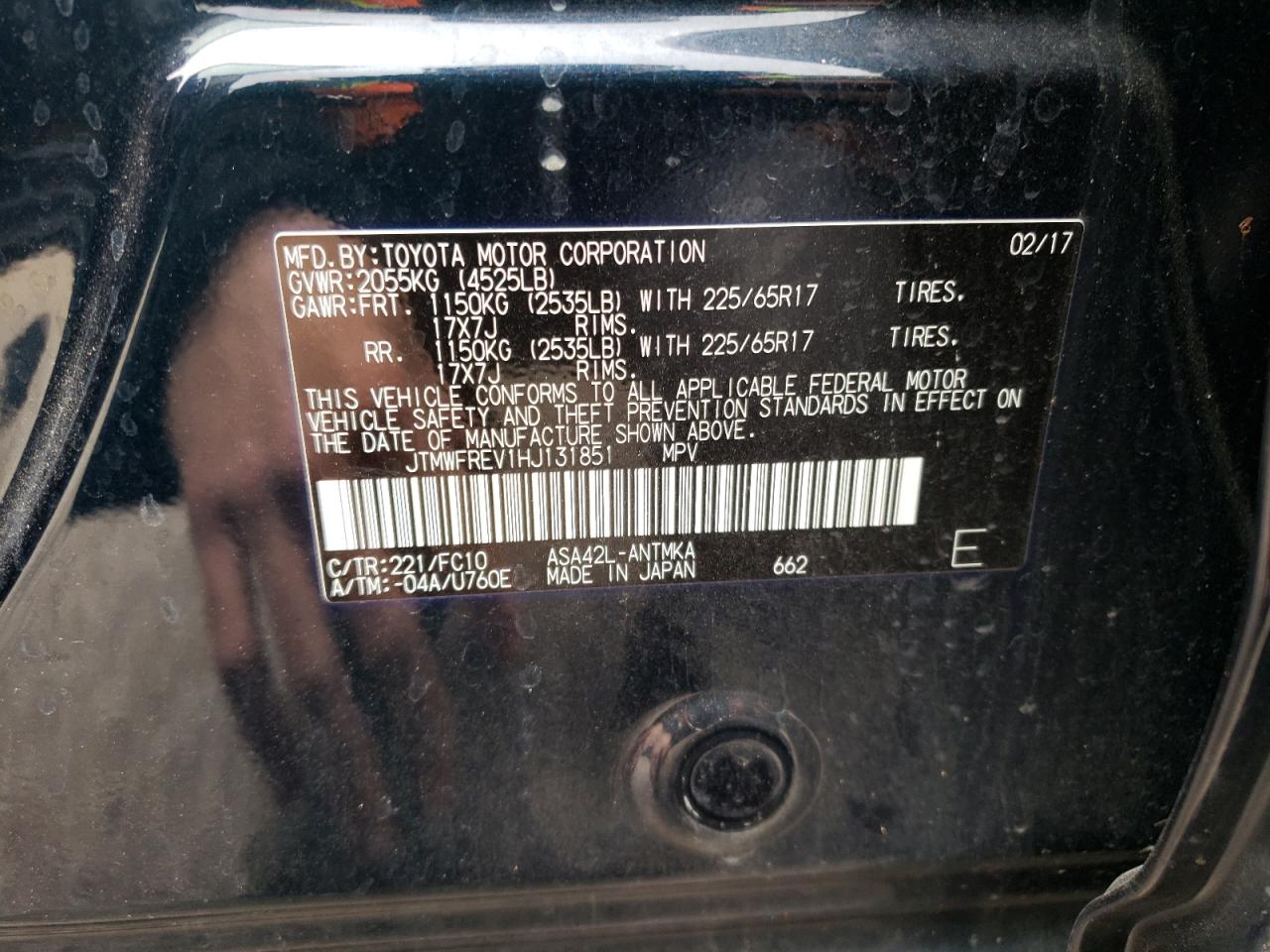 - VIN: JTMWFREV1HJ131851
